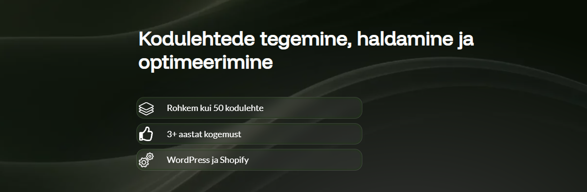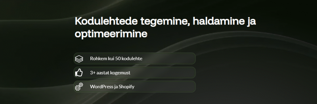 Kodulehtede ja e-poodide tegemine, nende haldamine ning uuendamine – kõik ühest kohast ja ikka selleks, et tagada sinu ettevõtte eduks vajalikud lahendused. Küsi pakkumist siit.